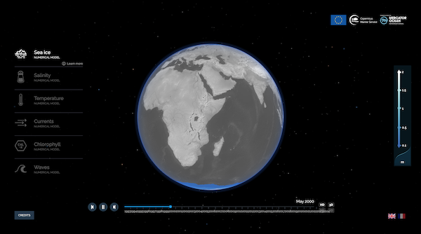 For example, the Copernicus Marine Environment Monitoring Service provides estimates about the oceans and reports about their status (see https://marine.copernicus.eu/osr9-summary/flipbook/ ) while the Copernicus Climate Change Service integrates long time data series from different sources to monitor the evolution of the so-called Essential Climate Variables. This Service also provides authoritative reports about the State of the Climate, informing key decisions on how to mitigate climate change and how to drive effective adaptation measures.